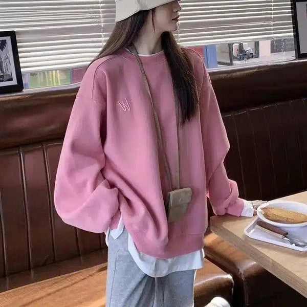 Koreansk versjon av løs tynn våren falsk todelt hettegenser