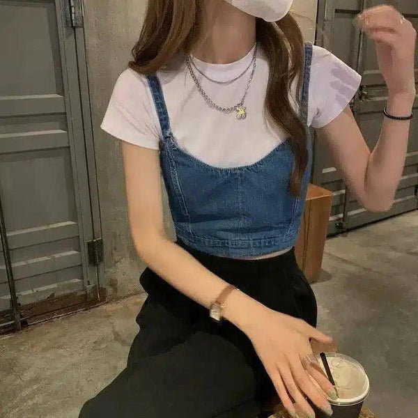 - type plagg Plaggtype: Lagdelt ensemble med en crop top i denim over en enkel hvit t-skjorte