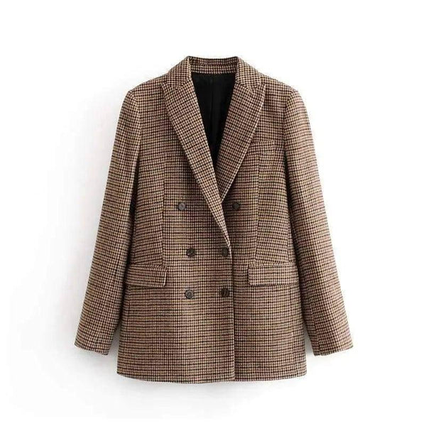 Dobbeltspent rutete høst- og vinterplagg for kvinner