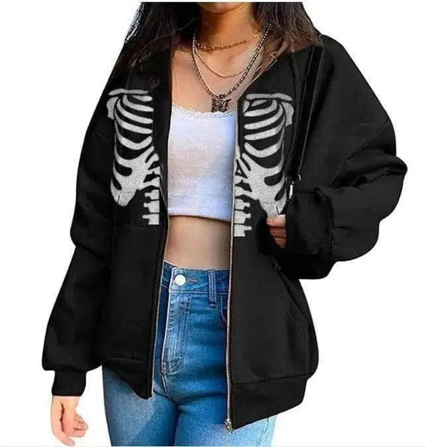 Streetwear hettejakke med skjelettmønster for kvinner Løse