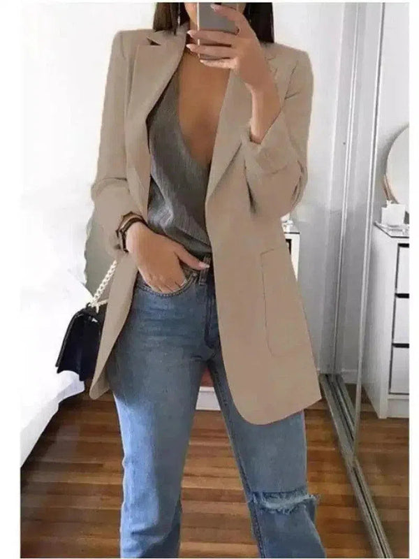 Kombinasjon av skreddersydd blazer og casual jeans for kvinner