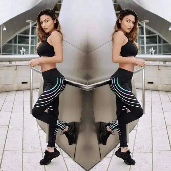 - Designfunksjoner: Levende stripedetaljer på siden av leggings