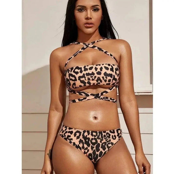 Badedrakt med stroppeløs tubetopp i leopardmønster