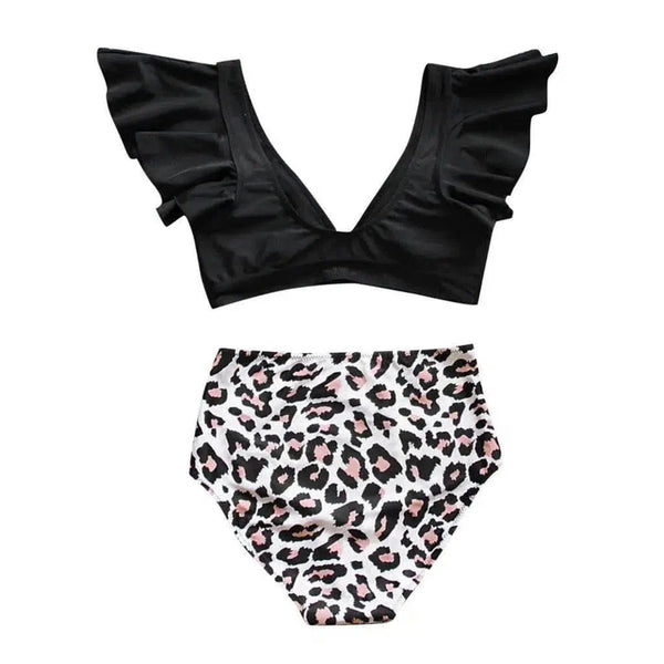Badedrakt med leopardmønster og delt høy midje, todelt sett