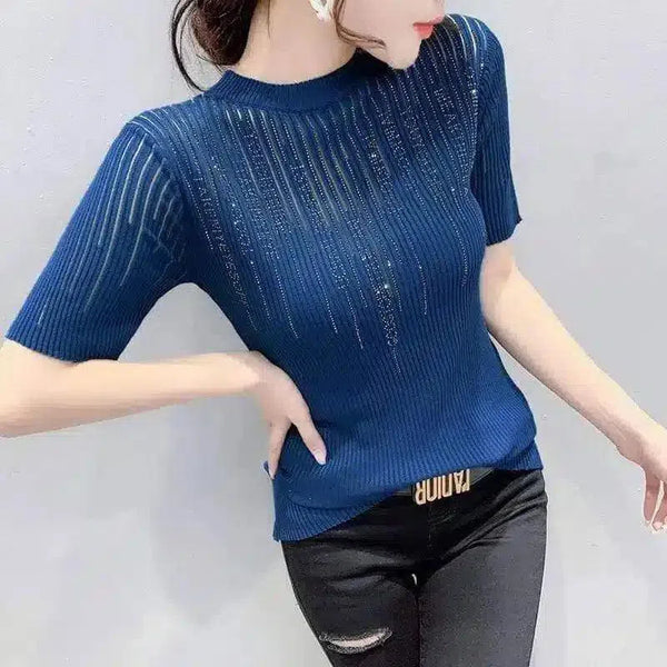 Kortermet topp i ribbestrikk for kvinner