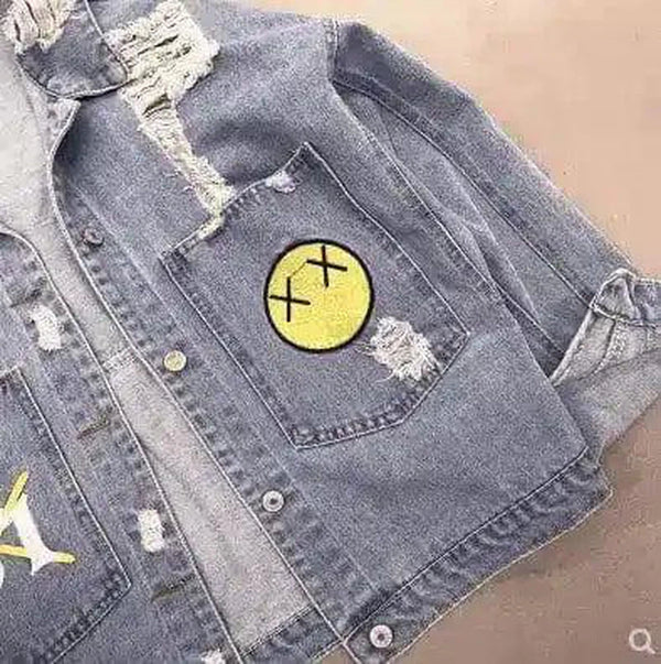- Designdetaljer: Fete grafiske lapper og frynsete detaljer