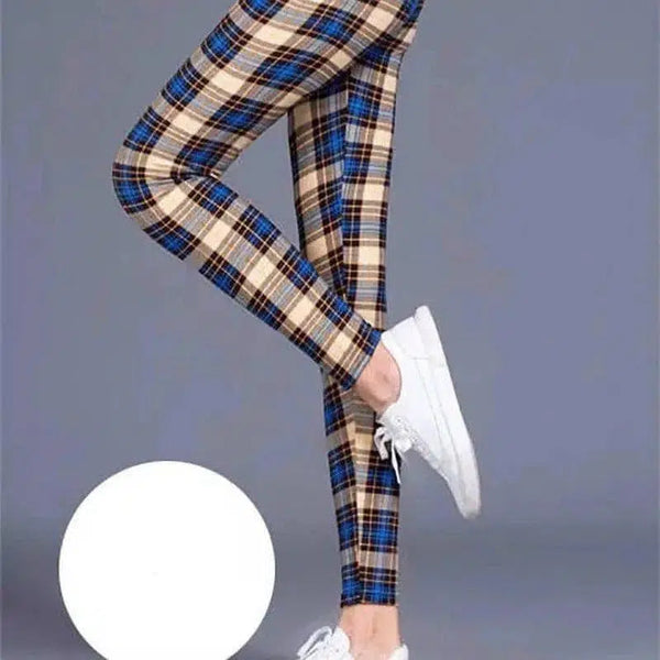 - Mønster Mønster: Klassisk rutete print i beige, blått og svart