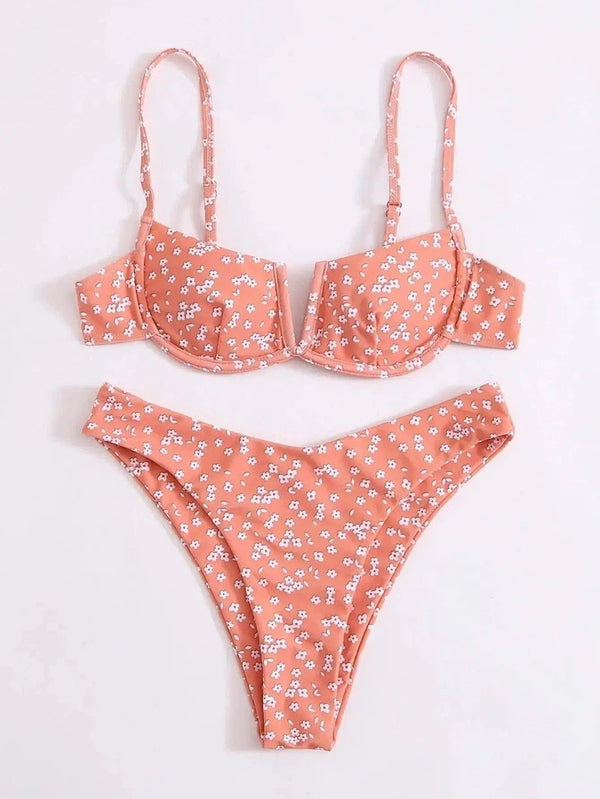 Produktbeskrivelse: Liten blomstret bikini delt kvinnelig badedrakt