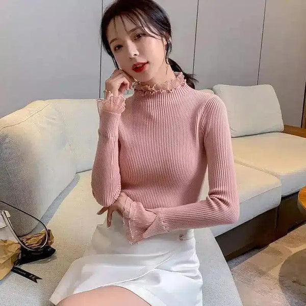 Ribbestrikket genser med mansjettkrage til dame