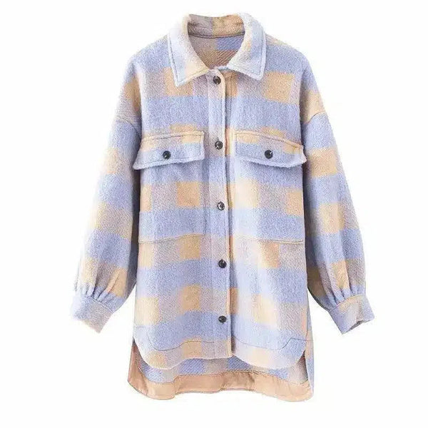 - Et stilig rutemønster: Skill deg ut med stil med jakkens iøynefallende blå og beige rutete design, et tidløst mønster som tilfører et snev av klassisk sjarm til ethvert antrekk.