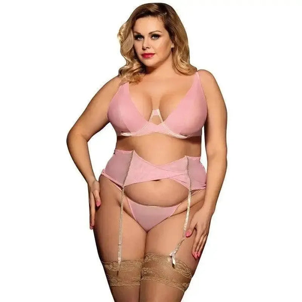 Rosa gjennomsiktig strømpebåndspyjamas-sett
