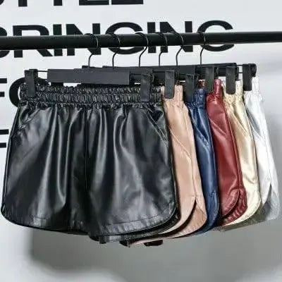 Pu skinnbukser tynn fløyel elastisk høy midje casual bred