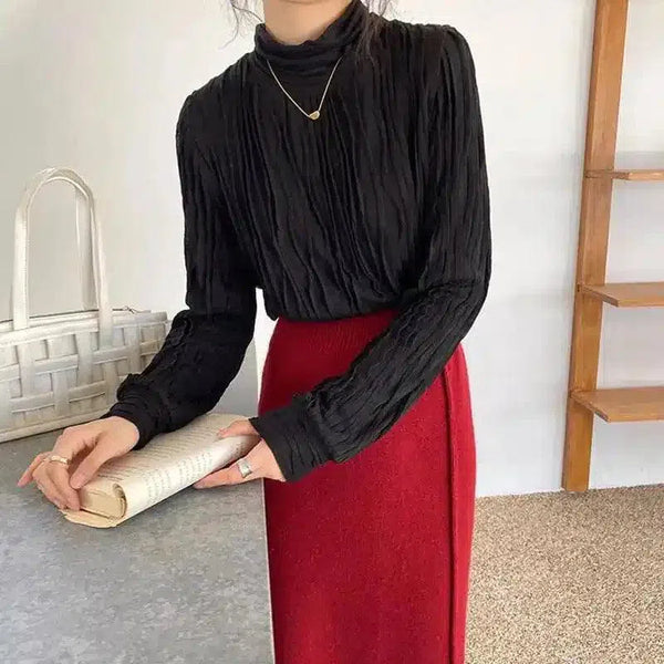Plissert, langermet topp med rullekrage for kvinner