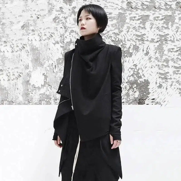 Rullekrage langermet svart irregulær kåpe med glidelås