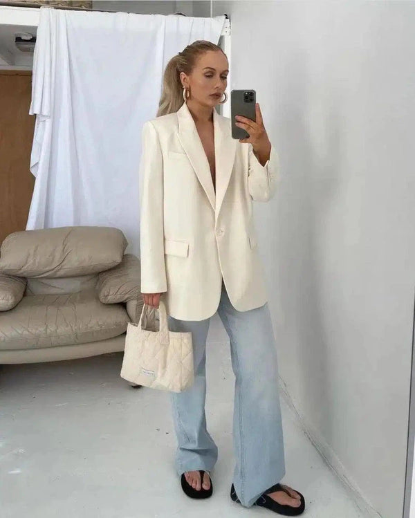 Skreddersydd blazer og jeans med vide ben for kvinner