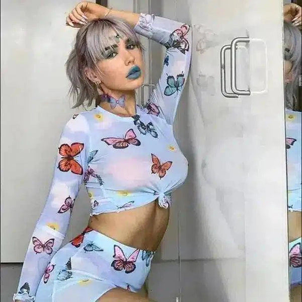 - Design: Levende sommerfugltrykk på en lyseblå bakgrunn