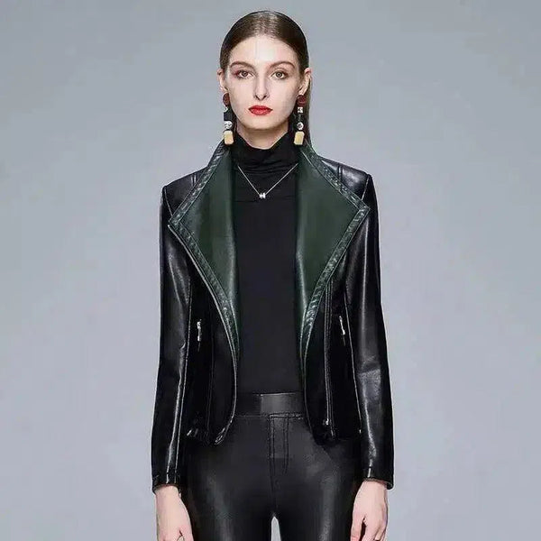 Luksuriøst materiale: Denne jakken er laget av høykvalitets imitert skinn, og har en elegant og glatt tekstur som gir både holdbarhet og et polert utseende.