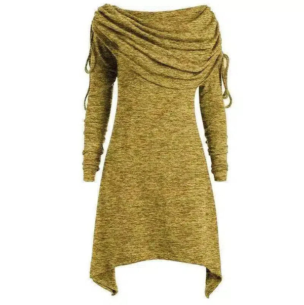 Inkorporer denne stilige og unike Asymmetrical Drape Neck Dress i garderoben din for en blanding av komfort