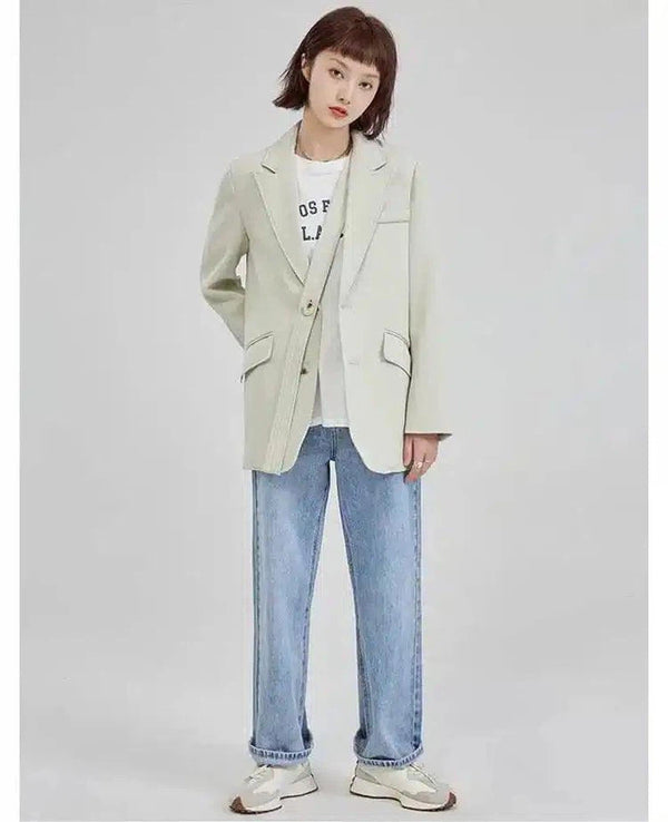Kombinasjon av casual blazer og denimjeans for kvinner