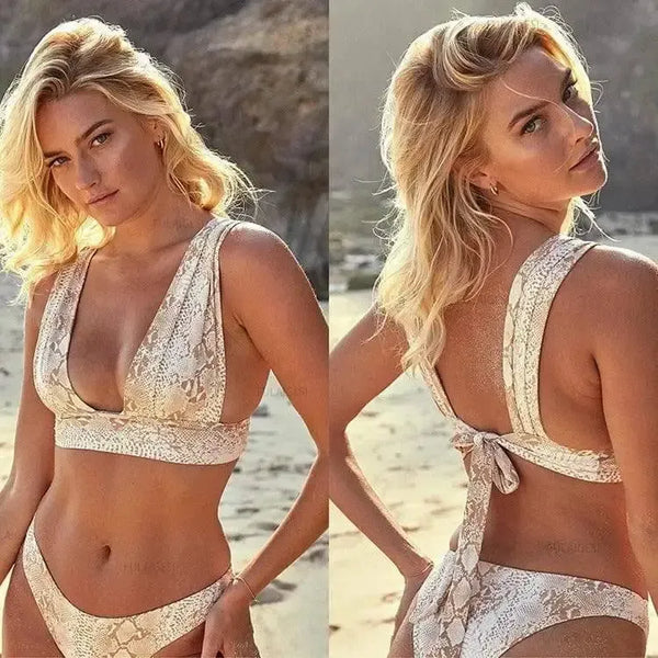 - Design Design: Splitbikini med slangetrykk og iøynefallende reptilmønster