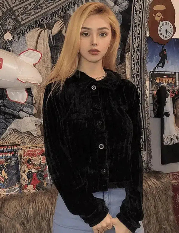 Casual jakke i fløyel med knapper til dame