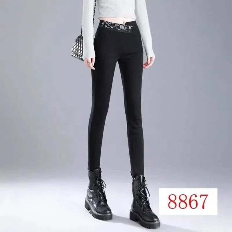 Svarte leggings med høy midje, slankende, trange blyantbukser