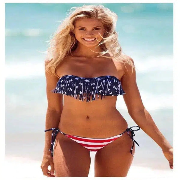 Produktbeskrivelse: Bikini med duskflagg og trykk