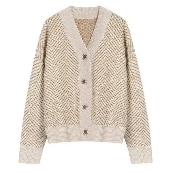 V-hals diamantstriplet cardigan i lazy style med litterær strikk