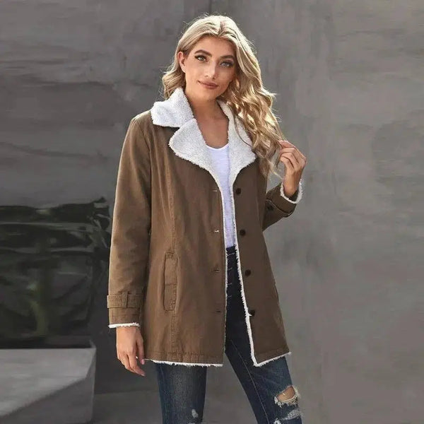 Fløyelsfrakk for kvinner med midtlengde revers i bomull
