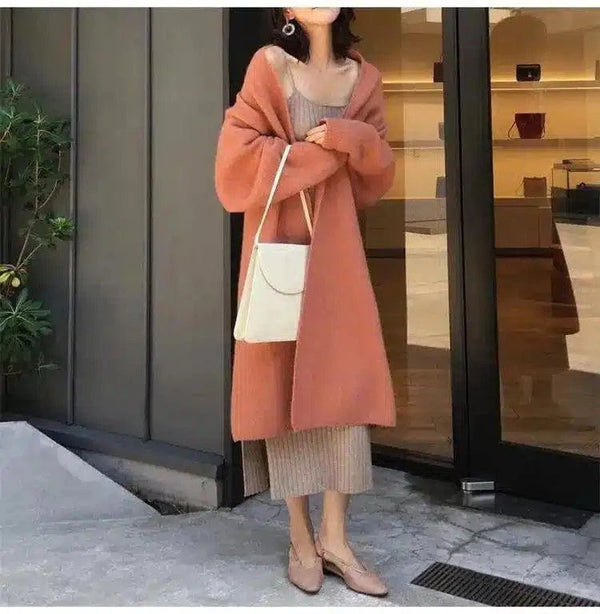 Varm lang kåpe og strikkekjole Damemotekombinasjon