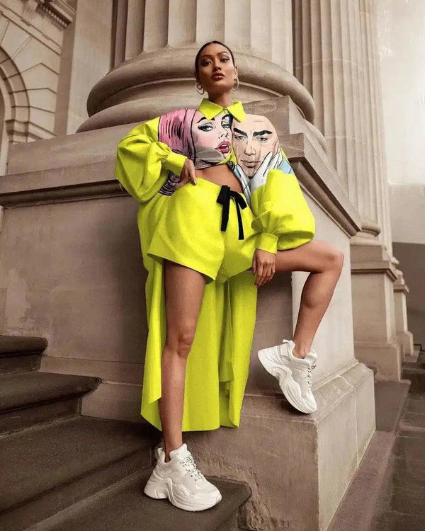 - Ytterligere detaljer: Grafisk design foran, delt nederkant som strekker seg ut i en høy-lav silhuett