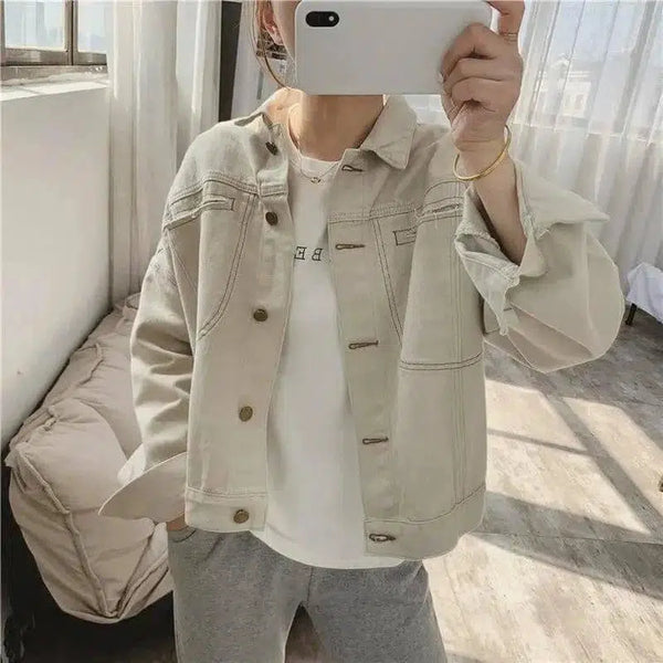 Western beige denim kort frakk dame