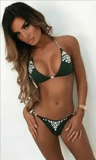 Women Glitter Rhinestone Bikini Set Push Up Bra Halter