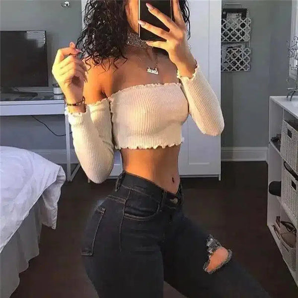 - Uthalsringning eller skulderstil: Off-the-shoulder med elastisk halsringning