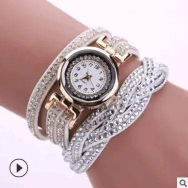 Moteklokke damer moteklokke, diamant vridd pu belte opptrekkbar moteklokke