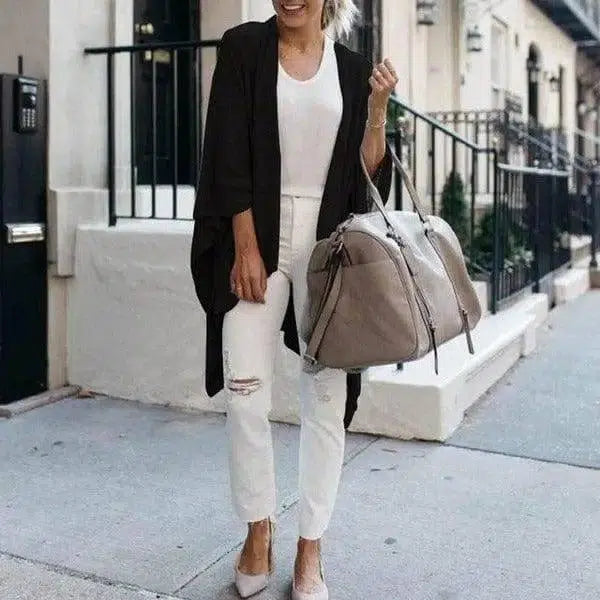 Ms Lang løs uregelmessig hem kåpe av strikking cardigan