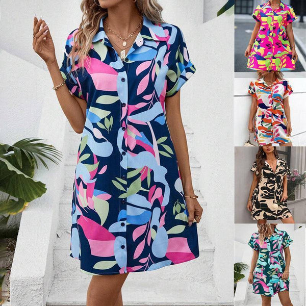 Ny kort ermet skjortekjole med blomstertrykk Sommermote