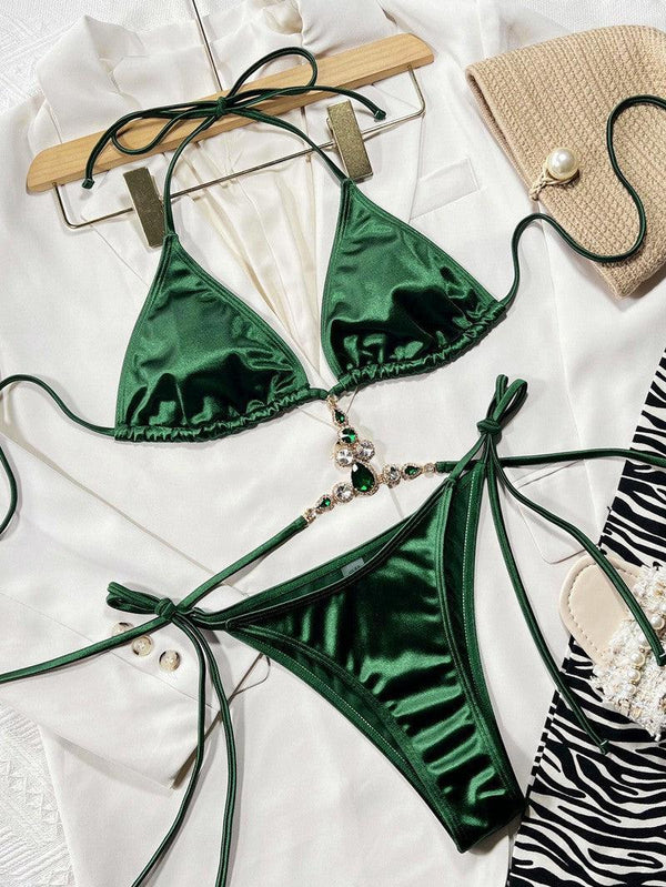 Rhinestone Decor Halter Neck Bikini Set