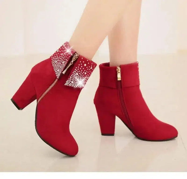 Nubuckstøvler med rhinestone og kort hæl for kvinner