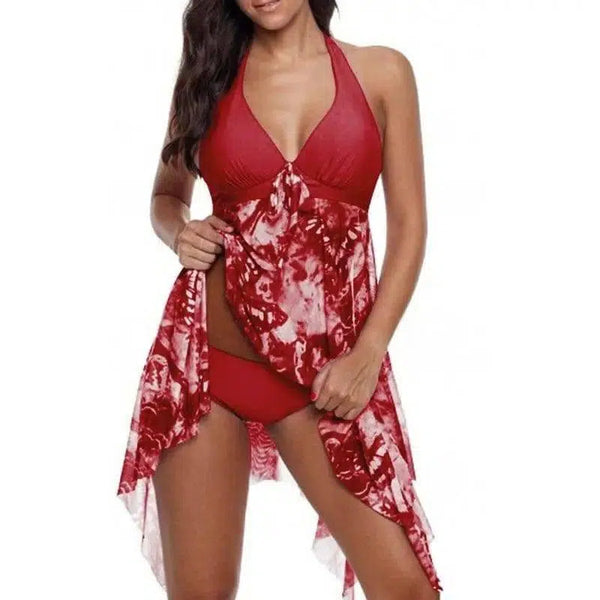 Bikini med uregelmessig hem og delt blomstret badedrakt