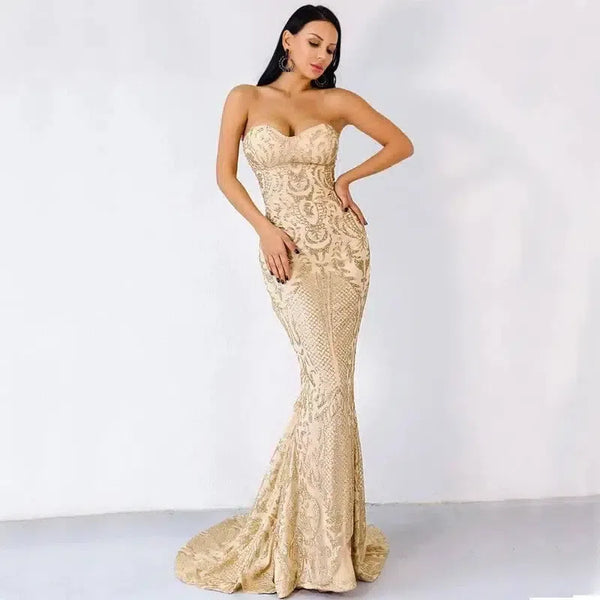 ELEGANT STROPPELØS GEOMETRISK AFTENKJOLE