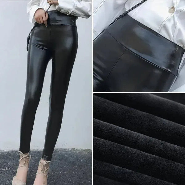 Skinnbukser for kvinner Tykk stor størrelse høy midje PU skinn
