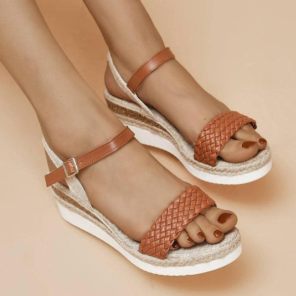 - Produkttype Produkttype: Flettede lin kilehælsandaler