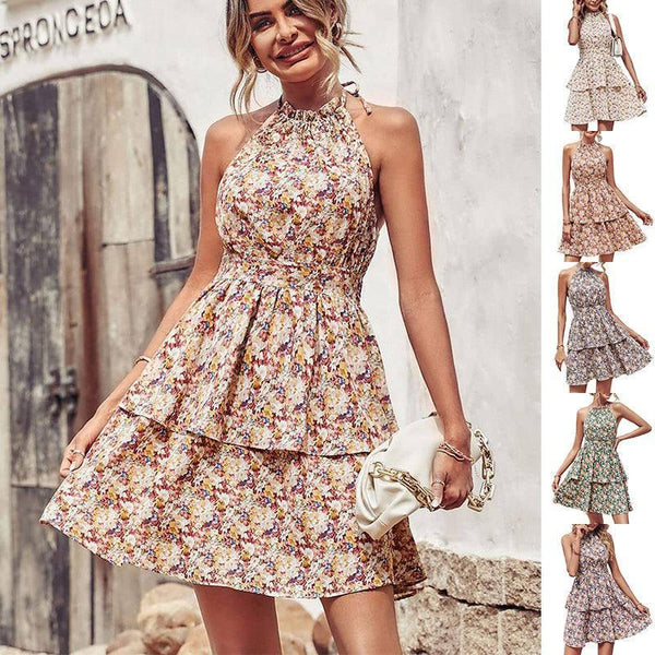 Sommerkjole med trykk og halter Fashion Boho Backless Ruffled