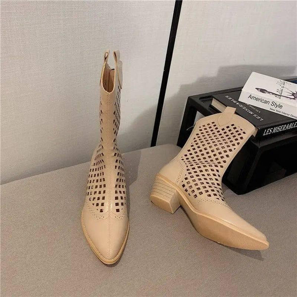 Spisse western cowboystøvler for kvinner Tynne, hule ridderstøvler Tykke