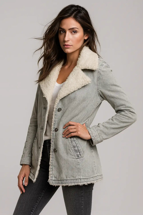 Fleecefôret denimjakke for dame