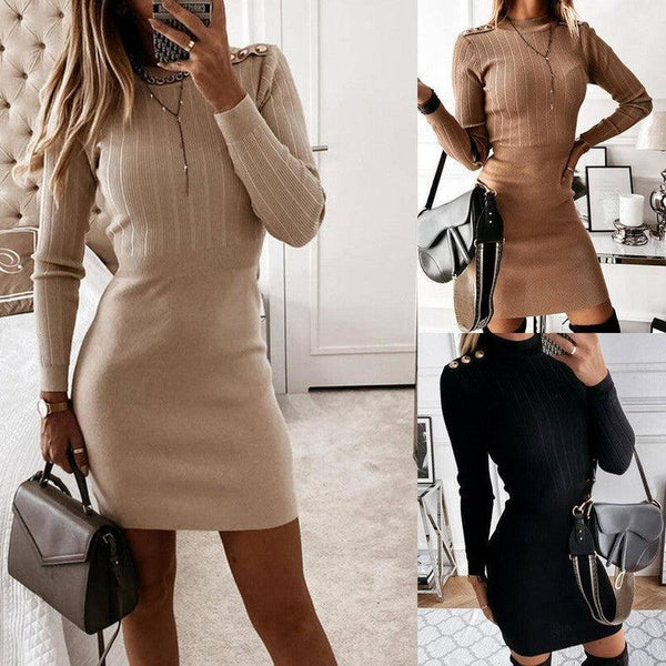 Kort skjørt i strikk med hofter Langermet strikkegenser for kvinner