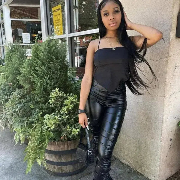 Tettsittende, plisserte skinnbukser med høy midje og stretch