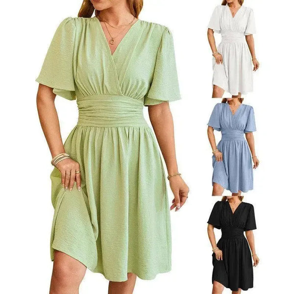 V-hals kort ermet kjole Mote kjole med klokkeerm sommer Dameklær