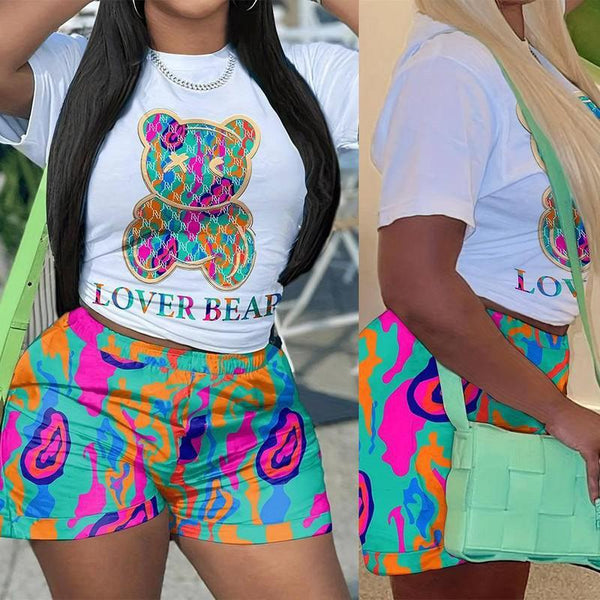 Produktbeskrivelse: Voldelig bjørnetrykt kortermet dress